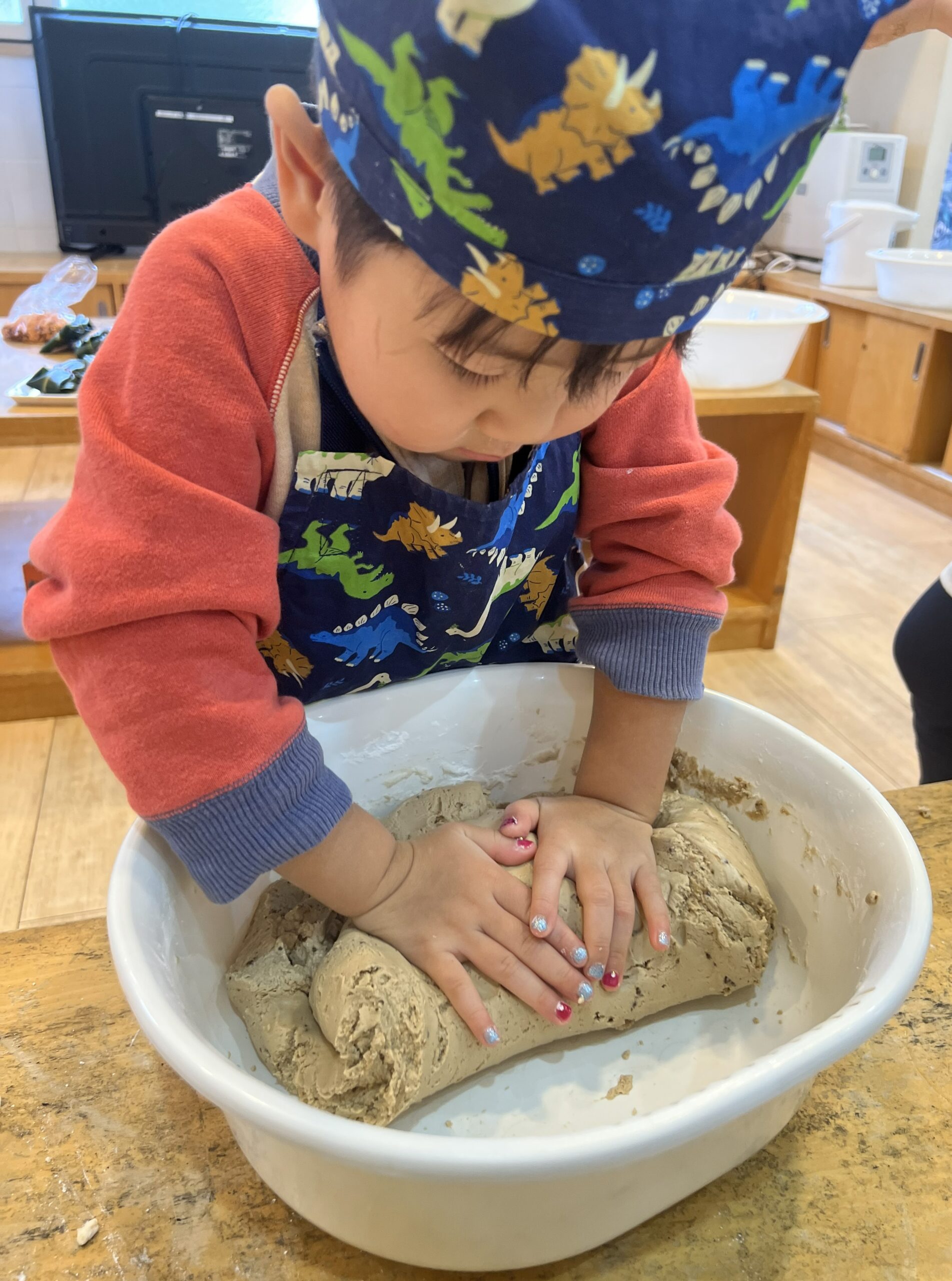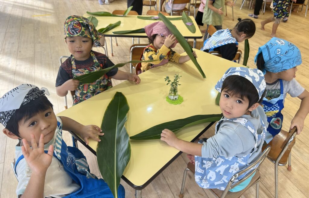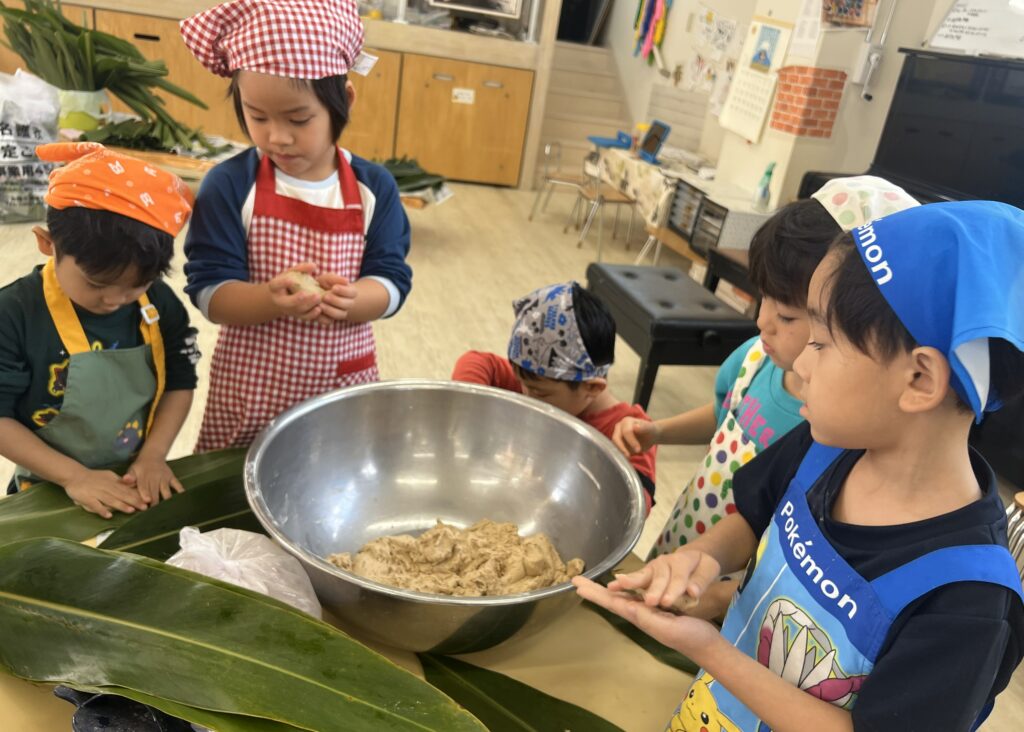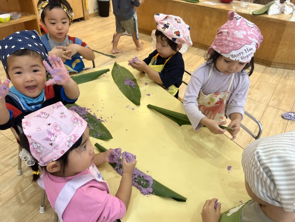 みなさんこんにちは(^▽^)/ 星のしずく保育園のブログへようこそ! 今日は子どもたちと一緒にムーチー作りをしましたよ! 餅をこねたり、葉っぱで包んだり、子ども達に教えながら一緒に楽しみました!💕 健康祈願✨